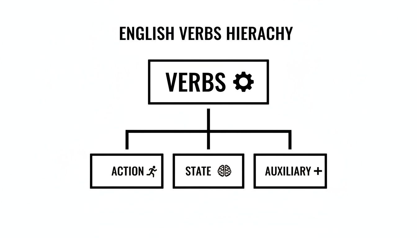 This diagram gives you a bird's-eye view of the main verb categories we’re about to dive into.