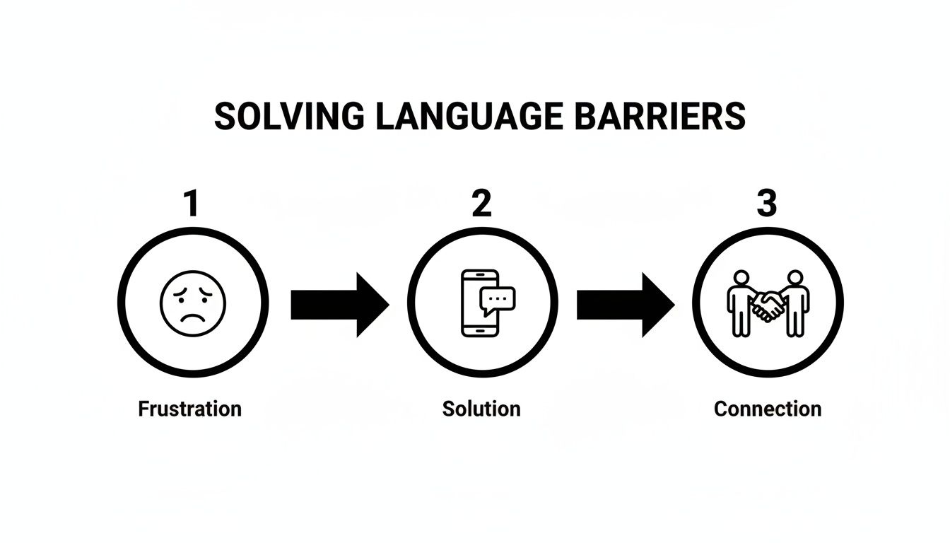 It’s one thing to understand the tech behind a real time voice translator app, but seeing it in action is where it clicks. The magic happens when you move from theory to practice, turning what could be a moment of confusion into a genuine connection.