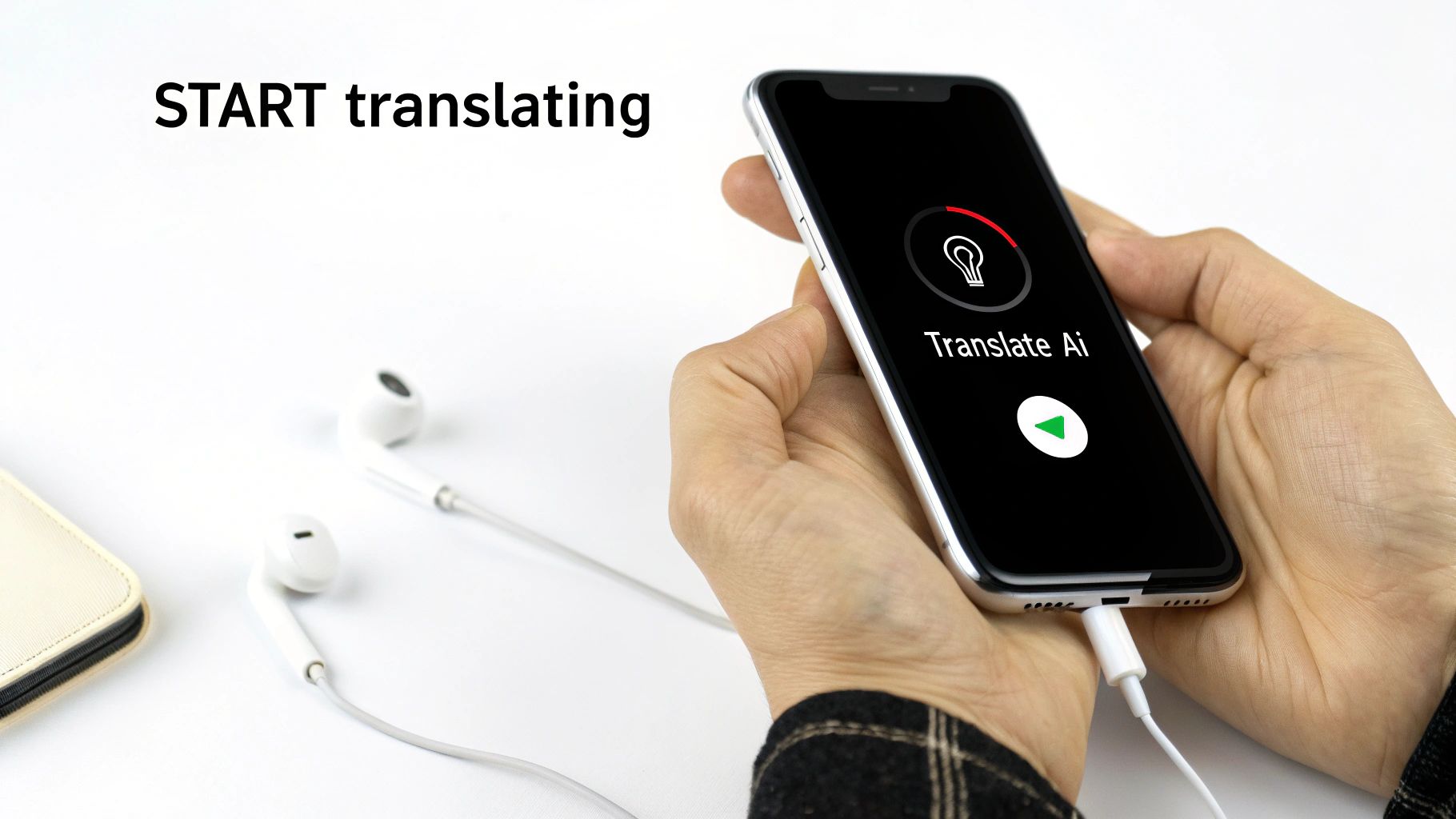 Translate AI works with any standard earbuds you already have, including AirPods. This gives you clear, private audio, making your conversations discreet and easy to follow, even in a noisy café or busy street.