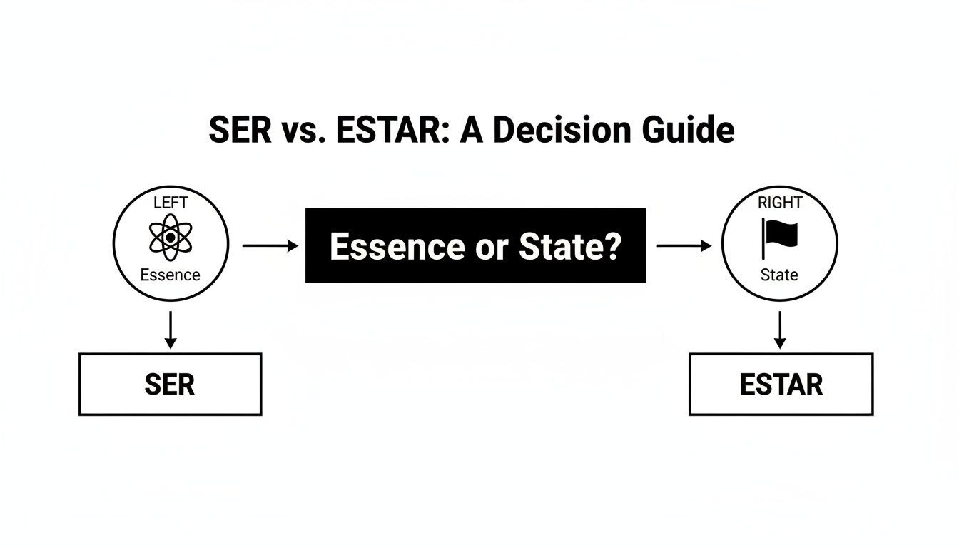 Struggling with ser or estar? You’re not alone. If you've ever found yourself pausing mid-sentence, wondering which verb to use, you've hit the most common roadblock for Spanish learners. The core difference seems simple: ser is for permanent traits, and estar is for temporary states. But when you're in a real conversation, that distinction can feel incredibly blurry.