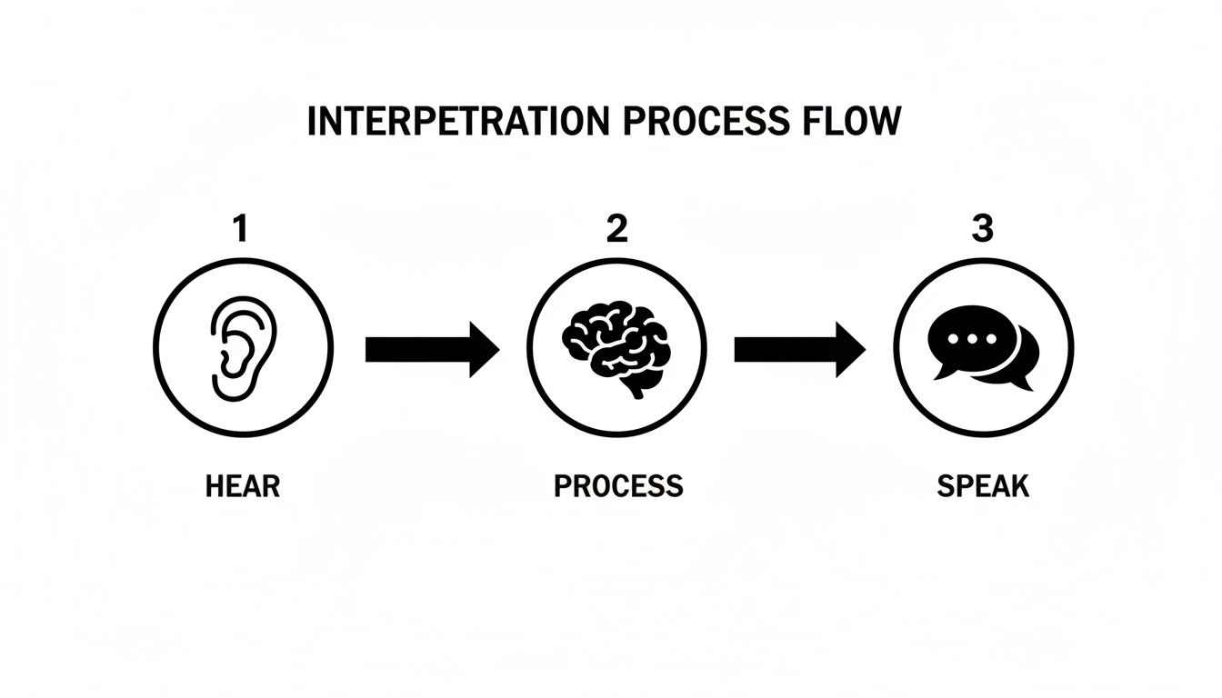 This diagram breaks down the core mental steps an interpreter juggles in seconds.
